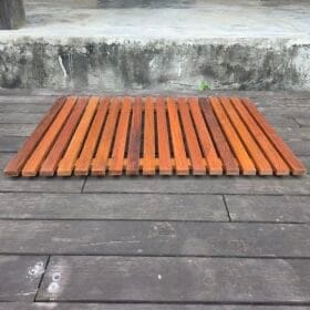 Durability is essential for a high-quality wooden mat. The dense reclaimed hardwood offers strong resistance to humidity, daily wear, and frequent foot traffic. Each slat is carefully sanded to ensure a smooth tactile finish while preserving structural strength.